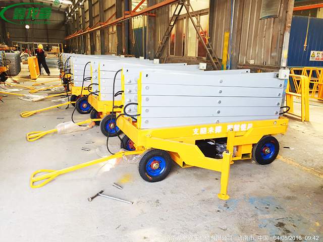 移動(dòng)剪叉式升降平臺(tái)主要技術(shù)特點(diǎn):臺(tái)面鋼板折彎、底架及剪叉結(jié)構(gòu)山鋼定做高強(qiáng)度矩形管材; 標(biāo)準(zhǔn)冷彎槽做道軌,使用尼龍滑塊做導(dǎo)軌輪,接觸面大,升降平穩(wěn),晃動(dòng)??;液壓油缸 內(nèi)置防爆閥(防止油管斷裂,平臺(tái)失速下降),采用進(jìn)口密封圈,經(jīng)久耐用,不泄露;雙層鋼網(wǎng)高壓油管;升降機(jī)專(zhuān)用液壓泵站,加裝應(yīng)急下降閥,平臺(tái)斷電可手動(dòng)控制 下降,內(nèi)置溢流閥,可防止上行運(yùn)動(dòng)時(shí)系統(tǒng)壓力過(guò)高,起到超載保護(hù)功能;充氣橡膠輪胎; 電路電器、接觸器羅列連接,加裝熱過(guò)載保護(hù),缺相保護(hù)等安全保護(hù)功能;電動(dòng)上、下電動(dòng)控制,控制按鈕盒加裝急停按鈕,以保障財(cái)產(chǎn)及人身安全,各操作部分使用24V安全控制電壓;軸銷(xiāo)圓鋼配做,調(diào)質(zhì)處理;拋丸、噴砂 除銹處理,除去鋼結(jié)構(gòu)構(gòu)件表面的銹蝕及焊接飛濺,能使鋼構(gòu)件表面產(chǎn)生一定程度的凹凸不平的效果,增大粉末的附著力;使用靜電粉末噴涂;涂層外觀質(zhì)量?jī)?yōu)異,附著力及機(jī)械強(qiáng)度強(qiáng),色澤亮度高,經(jīng)久不褪色。