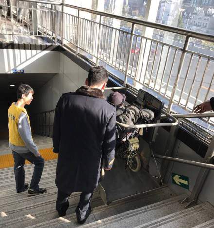 大連地鐵站殘疾人無障礙升降平臺(tái)、樓梯升降機(jī)、斜掛式輪椅升降平臺(tái)、主要為使用輪椅者提供上下樓梯的服務(wù),其一般結(jié)構(gòu)合理使用安全。為了防止平臺(tái)傾翻,使用二根導(dǎo)軌。斜掛式輪椅升降平臺(tái)主要由工作平臺(tái)、支承框架、保護(hù)護(hù)欄組成,主體是濟(jì)鋼結(jié)構(gòu)。工作平臺(tái)是升降機(jī)的工作部分,表面復(fù)有防滑濟(jì)鋼產(chǎn)材料。平臺(tái)的三個(gè)外向面都安裝有安全護(hù)板,當(dāng)平臺(tái)運(yùn)動(dòng)受阻時(shí),能使升降機(jī)停止運(yùn)動(dòng)。平臺(tái)在不使用時(shí)可以向上折疊,以減少占用空間。