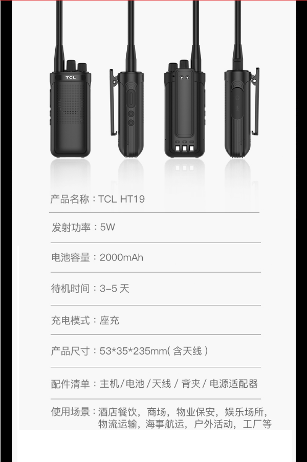 商品名稱(chēng):TCL 對(duì)講機(jī)大功率商用辦公專(zhuān)業(yè)對(duì)講機(jī)遠(yuǎn)距離大功率對(duì)講機(jī)戶外工地民用商用無(wú)線對(duì)講機(jī)手持臺(tái) TCLHT19