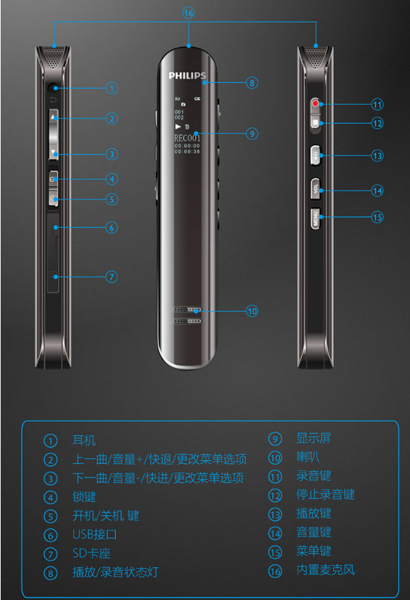 商品名稱:飛利浦(PHILIPS)VTR5210 錄音外圍設(shè)備 錄音筆 16G內(nèi)存可擴(kuò)展 會(huì)議采訪 數(shù)字降噪 雙麥克風(fēng)數(shù)碼鋰電錄音筆